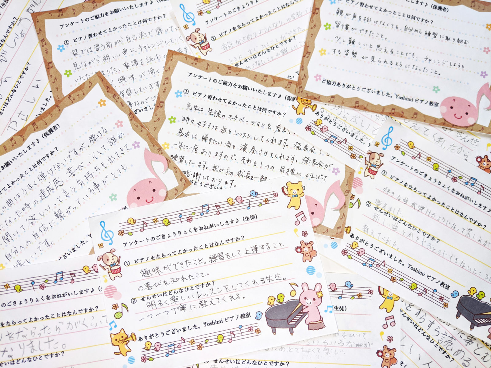 家では習う前から自己流で弾いていましたが、楽譜を見ながら新しい曲にチャレンジしていく楽しさを教えていただきました。楽譜を読むのが苦手でとても苦戦していますが、興味が湧く様に、歌やカードを使い、楽しみながら学習しています。無理なレッスンはせずに、その子に合った指導なのでピアノが好きな気持ちを忘れず練習出来ていて良かったです。